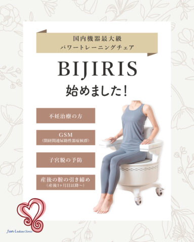 こんにちは😊兵庫県尼崎市の産婦人科、JUNレディースクリニックです🏥JUNレディースクリニックでは、国内機器最大級パワートレーニングチェア『BIJIRIS』の取り扱いを開始いたしました!女性の身体の様々なお悩みに効く、服を着たまま20分間座...