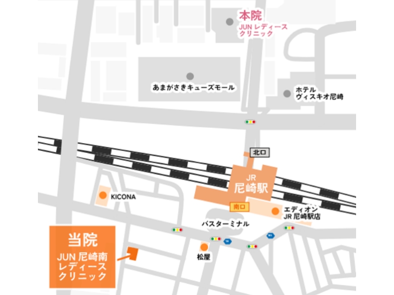 JR尼崎駅からJUN尼崎南レディースクリニック(分院)へのアクセスマップ
