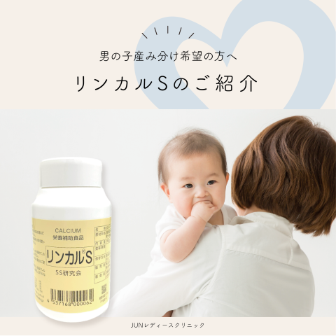 こんにちは😊兵庫県尼崎市の産婦人科、JUNレディースクリニックです🏥今回はサプリメントであるリンカルSのご紹介です!リンカルとは男の子の産み分け希望の方へ向けた体質改善のカルシウム製剤です。20年以上の歴史で高い成功率を維持しています✨カル...